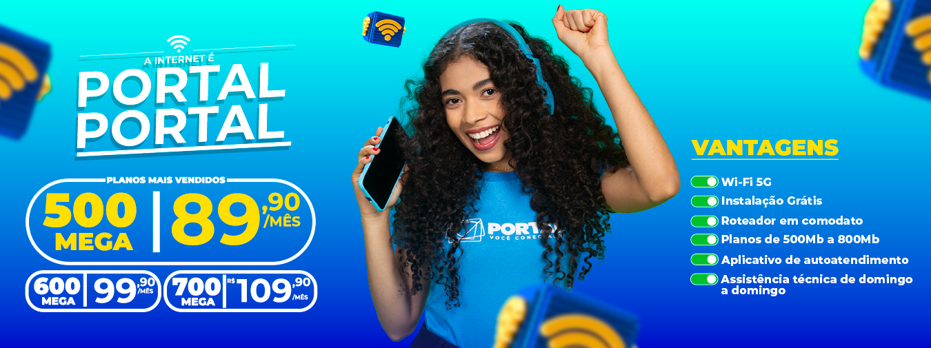 Uma conexão rápida e estável: desfrute do poder da Portal 100% fibra óptica.